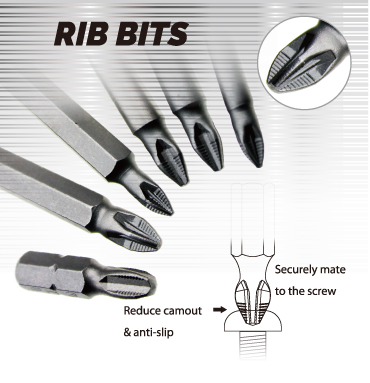 - RIB bits are reliable, high-performance tools that resist slipping or jumping out during tightening of screw.