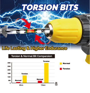 With the coming of torsion bits, excessive load work and high impact, high torque operations can be carried out easily and comfortably.